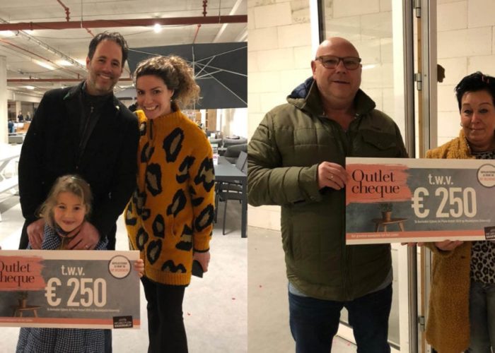 Afgelopen weekend vond de Plein Outlet op Meubelplein Ekkersrijt weer plaats. Op vrijdag en zaterdag mochten wij de 50e bezoekers verrassen met een mooie cheque t.w.v. € 250,-. De winnaars waren erg blij met de cheque. Veel woonplezier met de nieuwe meubels!